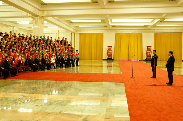 中央企业先进集体和劳动模范表彰大会21日在人民大会堂举行,国务委员王勇出席大会并会见先进集体和劳动模范代表。国资委党委书记、主任郝鹏出席大会并讲话。国务院副秘书长孟扬出席会议。人力资源社会保障部副部长、党组成员张义全宣读表彰决定。国资委副主任、党委委员任洪斌主持会议,国资委党委委员出席会议。