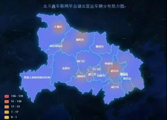 根据北斗鑫车联网平台大数据统计,自1月23日以来,共有1100余辆北奔车辆满载物资出入湖北境内及周边,其中也包括助力火神山医院和雷神山医院建设的运营车辆。车辆分布热力图显示,目前仍有很多北奔车辆为抗击疫情进行物资运输和物流配送。