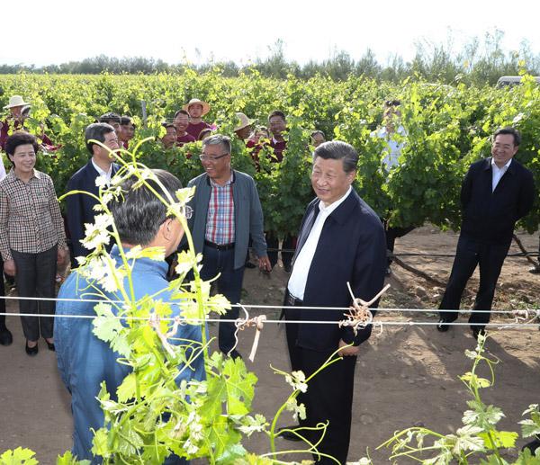 习近平总书记9日在银川考察调研。他先后来到贺兰县稻渔空间乡村生态观光园、贺兰山东麓葡萄种植园,了解当地发展特色农业产业、加强贺兰山生态保护等情况。