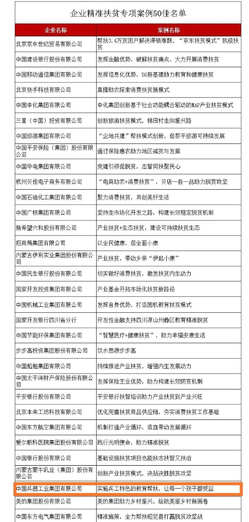 兵器工业集团教育扶贫获评国务院扶贫办2020年企业精准扶贫专项案例“50佳” |