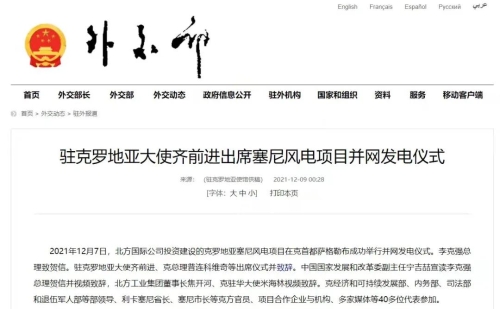 2021年12月7日,世界杯竞猜网站北方公司所属北方国际投资、建设和运营的塞尼156MW风电项目在克罗地亚首都萨格勒布隆重举行并网发电仪式。李克强总理致贺信。克罗地亚总理安德烈·普连科维奇,中国驻克罗地亚大使齐前进出席仪式并致辞。中国国家发展和改革委员会副主任宁吉喆宣读李克强总理贺信并视频致辞,世界杯竞猜网站董事长焦开河、克驻华大使米海林视频致辞。 中华人民共和国外交部报道 普连科维奇总理在致辞中表示,感谢李克强总理发来贺信,他与中国领导人一直非常重视塞尼风电项目投资与建设。祝贺项目克服疫情与地震等影响,成功并网发电。增加清洁可再生能源、绿色电力对克乃至欧洲都很重要,克政府的重要战略和目标之一就是低碳发展和增加清洁能源供应。塞尼风电项目占克总发电量将达3.5%,对克实现2022年可再生能源比例30%目标具有很大帮助。此次投资使北方国际成为在克最大的清洁能源投资企业。非常欢迎更多中国企业扩大对克投资。 宁吉喆宣读李克强总理贺信并视频致辞时表示,2017年11月第六次中国—中东欧国家领导人会晤期间,在李克强总理和普连科维奇总理等中东欧16国领导人的共同见证下,塞尼项目签署了协议。项目既是中国坚定践行绿色发展理念的具体体现,也是中国深化与克罗地亚、与中东欧国家务实合作的生动实践。希望中克两国政府部门,企业等有关各方共同努力、相互配合,运营好塞尼项目,打造出中欧绿色合作的样板,带动两国务实合作持续深入发展,造福两国人民。 焦开河在致辞时表示,在塞尼项目投入运营之际,李克强总理专门致信祝贺。作为塞尼项目的投资方、建设方、运营方,我们备受鼓舞,深感自豪!未来,世界杯竞猜网站将继续深入贯彻落实习近平总书记重要指示批示精神和李克强总理贺信重要要求,以高标准、可持续、惠民生为目标,与克方合作伙伴坦诚沟通、携手并进,进一步推动绿色能源建设,努力打造更多的“一带一路”标志性、引领性、示范性项目,为巩固中克战略合作伙伴关系、推进中克从经贸领域到全方位合作贡献积极力量。 齐前进祝贺塞尼风电项目顺利完工和成功并网发电。他表示,塞尼风电站项目并网发电是中克两国领导人亲自关注和推动的成果。作为迄今最大的中国在克投资合作项目,塞尼风电项目是中克和中欧绿色合作的典范,对克提高清洁能源生产消费发挥着重要作用。项目建设过程中为当地培养了许多工程、技术和管理人才,带动了当地企业发展,增加了就业和税收,促进了当地经济社会发展,充分体现了中国对外经贸合作与“一带一路”倡议秉持的互利共赢、共同发展的理念,也是中国积极倡导的绿色低碳发展合作的典范。 塞尼项目位于克罗地亚中部亚得利亚海沿岸,建设总投资1.79亿欧元,总装机容量156MW,采用39台4MW风力发电机组设备,风场面积达42.8平方公里。项目正式运营后,预计每年平均发电超3000小时,贡献约5.3亿度绿色电力,可减少二氧化碳排放约46万吨,将为克罗地亚促进能源转型、发展绿色经济提供强劲助力,贡献了“中国智慧”“中国方案”。 来源/中华人民共和国外交部、综合有关报道 |