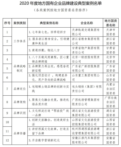 5月10日,由国家发展改革委等7部门和上海市政府共同主办,国务院国资委特别支持的2021年中国品牌日活动在上海举办。 活动现场,国资委指导举办了中国企业品牌建设分论坛,会上发布了《2020年度中央企业品牌建设发展报告》、2020年度100个国有企业品牌建设典型案例和100个优秀品牌故事。中国兵器工业集团北重集团的“技术创新和商业模式创新并驱,打造知名民族矿用车品牌”入选2020年度100个国有企业品牌建设典型案例,中国兵器工业集团北方公司的微电影《大山里升起的希望》入选2020年度100个优秀品牌故事。 《2020年度中央企业品牌建设发展报告》分析了当前中央企业加强品牌建设的形势要求,从战略引领、专业运营、支撑保障、组织管控、全球推广5个方面总结了中央企业年度品牌建设进展。 2020年度100个国有企业品牌建设典型案例和100个优秀品牌故事,汇集企业优秀经验做法,丰富国企品牌资源池,促进企业相互学习借鉴,加快提高品牌管理专业化水平。 2020年度100个国有企业 品牌建设典型案例 来源/国资小新 |