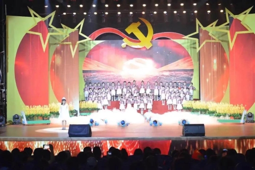 演出共分为三个篇章:“迎建党百年、传兵工精神”“忆长征岁月、梦璀璨中国”“承红色基因、展幼教初心”。演出过程中掌声不断,高潮迭起,有合唱,有情景剧,有舞蹈,有快板,全科共361名演出人员,孩子们个个落落大方,神采飞扬,《在灿烂阳光下》《灯火里的中国》《兵工情》,铭记红色历史,引导孩子们从小继承革命传统,传承兵工精神”。《春天的芭蕾》《我爱北京天安门》《水墨丹青绘祖国》《长征路上》一首首歌曲铿锵有力,一段段回忆激荡人心,师幼同台唱出了对党对祖国的热爱和崇敬之情,让人们感受到孩子们争做新时代红色接班人的信念、决心。《把爱献给咱的娃》《未来的保卫者》《炫彩青春》引导孩子们从小继承革命传统,传承红色基因,让红色教育点亮童年,让红色精神代代相传。“传承红色基因,红色精神代代相传。”