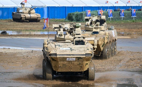 11月9日,在广东珠海举行的第十四届中国国际航空航天博览会上,中国兵器工业集团等企业为观众带来了震撼的地面装备动态展示。