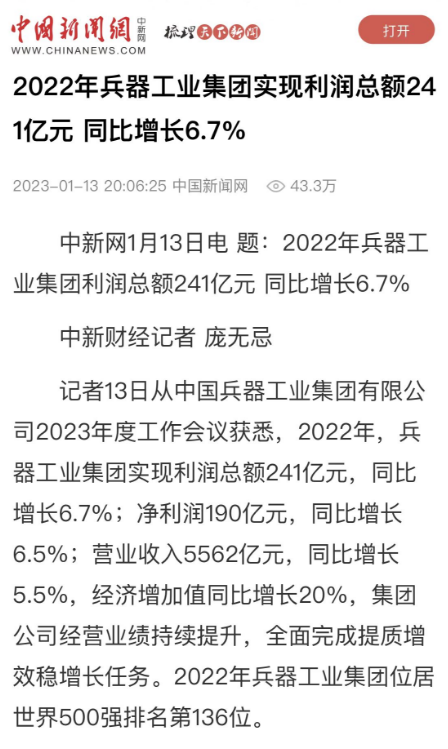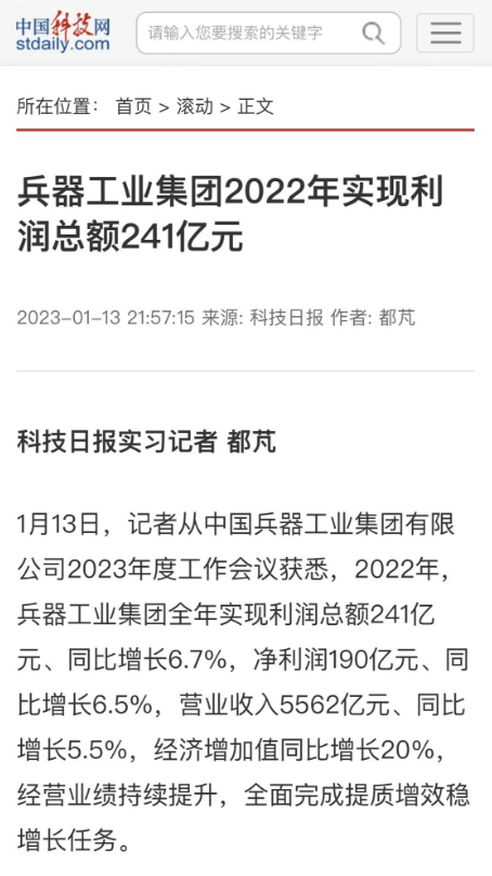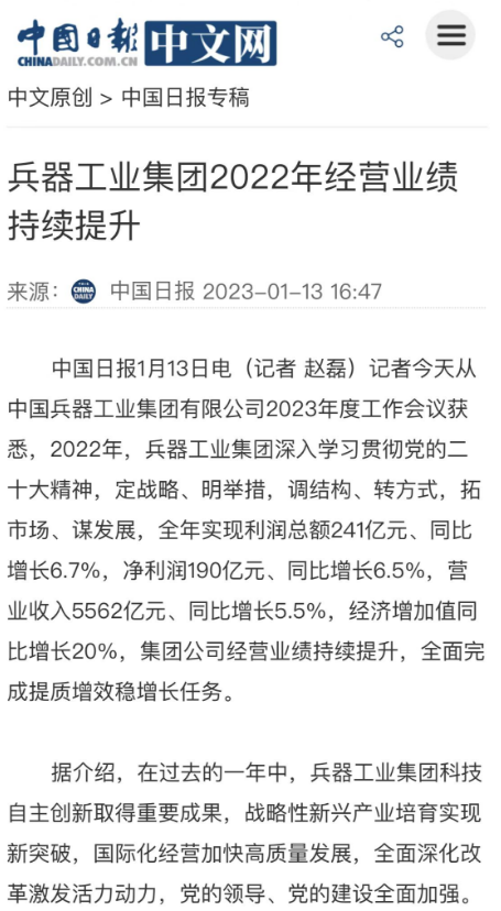 1月13日,世界杯竞猜网站召开2023年度工作会议,传达学习中央领导同志、军方首长和上级部门重要批示,总结集团公司2022年工作,研究部署2023年主要工作任务。 集团公司2022年重点工作取得的成绩及下一步的改革发展受到社会媒体广泛关注。新华社、新华财经、人民网、经济日报客户端、光明日报客户端、中国日报网、中国科技网、中国新闻网、央广网、国资委网站、学习强国中央企业学习平台、新浪网、腾讯网、搜狐网、网易网、今日头条等中央主流媒体、国家部委网站及知名网络媒体对集团公司工作会议进行了报道,重点关注集团公司高质量发展、科技创新、战略性新兴产业培育、深化改革、国际化经营、履行央企社会责任等内容。其中新华社以《北斗时空智能服务平台累计服务终端数突破15亿》为题,重点报道了集团公司2022年在自主创新、战略新兴产业培育、专利申请等方面取得的成绩;经济日报客户端、光明日报客户端、中国日报网等以《兵器工业集团2022年经营业绩持续提升》为题,重点报道了集团公司在高质量发展、全面完成提质增效稳增长方面取得的成绩。集团公司门户网站、微信公众号、微博等新媒体也对集团公司工作会议进行了及时报道,各成员单位纷纷对相关内容进行转载,引发全系统关注。 新华社:北斗时空智能服务平台累计服务终端数突破15亿 新华财经:兵器工业集团2022年实现净利润190亿元 同比增长6.5% 人民网:2022年中央企业营收同比增长8.3% 科技创新成效显著 经济日报客户端:兵器工业集团2022年经营业绩持续提升 光明日报客户端:兵器工业集团2022年经营业绩持续提升 中国日报网:兵器工业集团2022年经营业绩持续提升 中国科技网:兵器工业集团2022年实现利润总额241亿元 中国新闻网:2022年兵器工业集团实现利润总额241亿元 同比增长6.7% 国资委网站:2022年兵器工业集团实现利润总额241亿元 同比增长6.7% 学习强国中央企业学习平台:兵器工业集团2022年经营业绩持续提升 集团公司职工及广大网友热议工作会议 “这次会议全面总结了2022年工作,深入分析研判当前形势,部署2023年重点工作,为我们做好2023年及今后一个时期的工作明确了目标、坚定了信心。” “作为兵工人,我要苦练内功、不惧挑战、奋勇向前,为建设具有全球竞争力的世界一流集团公司贡献自己的力量。” “聚焦高科技领域,制造更多的大国重器,让更多的产品服务老百姓。” “在不平凡的2022年取得了亮眼的工作成绩,为兵器工业点赞。” “希望能有更多新型武器装备部队,2023年,望你们再创辉煌,加油!” |