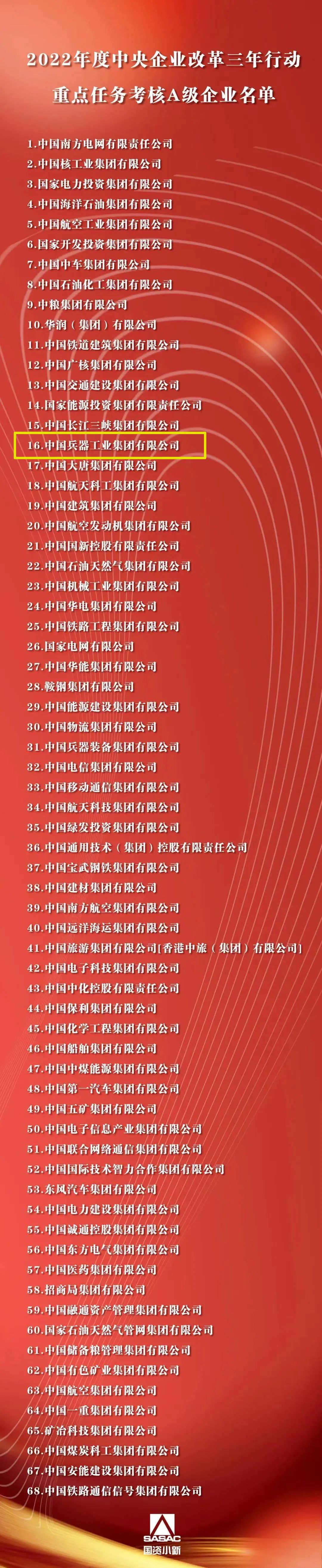 根据《中央企业改革三年行动重点任务考核实施方案(试行)》和《中央企业改革三年行动重点任务考核指标表(2022版)》,经审定,国务院国资委发布2022年度中央企业改革三年行动重点任务考核A级企业名单,世界杯竞猜网站获评A级。