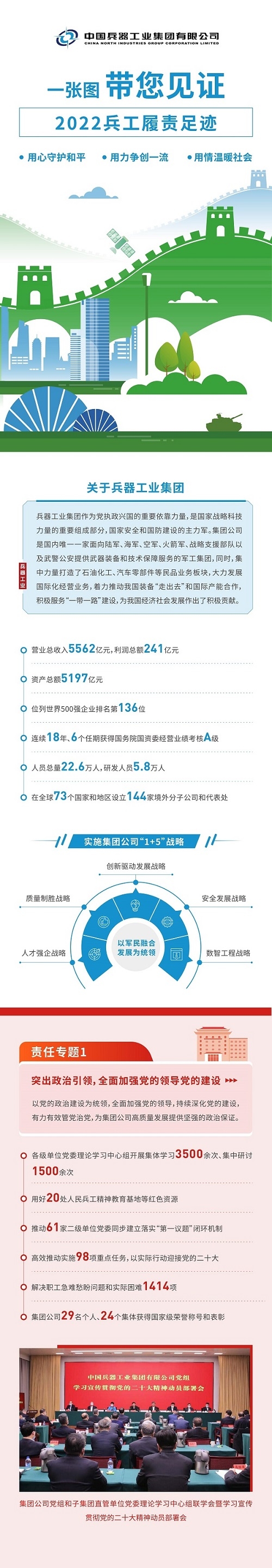 《世界杯竞猜网站2022年社会责任报告》(以下简称《报告》)是集团公司发布的第十四份年度社会责任报告,经中国企业社会责任报告评级专家委员会评定,《报告》第四年获得“五星佳”最高评级。 《报告》开篇设置“突出政治引领,全面加强党的领导党的建设”“沙场‘秋’点兵,中国兵器闪耀亮相珠海航展”两个责任专题,聚焦集团公司加强党建、强军报国的担当作为,书写集团公司在新时代新征程上的奋进答卷。主体章节以“用心守护和平、用力争创一流、用情温暖社会”为主题,从恪守强军首责、服务经济建设、共创美好生活三个维度展现了集团公司立足“1+5”战略和“双十”规划,聚焦新时代新征程新任务高质量履行政治责任、经济责任和社会责任的具体行动和成效亮点,诠释了集团公司服务国家战略、服务国防和军队现代化建设、服务国家经济社会发展的职责使命。 文/社会责任部 |