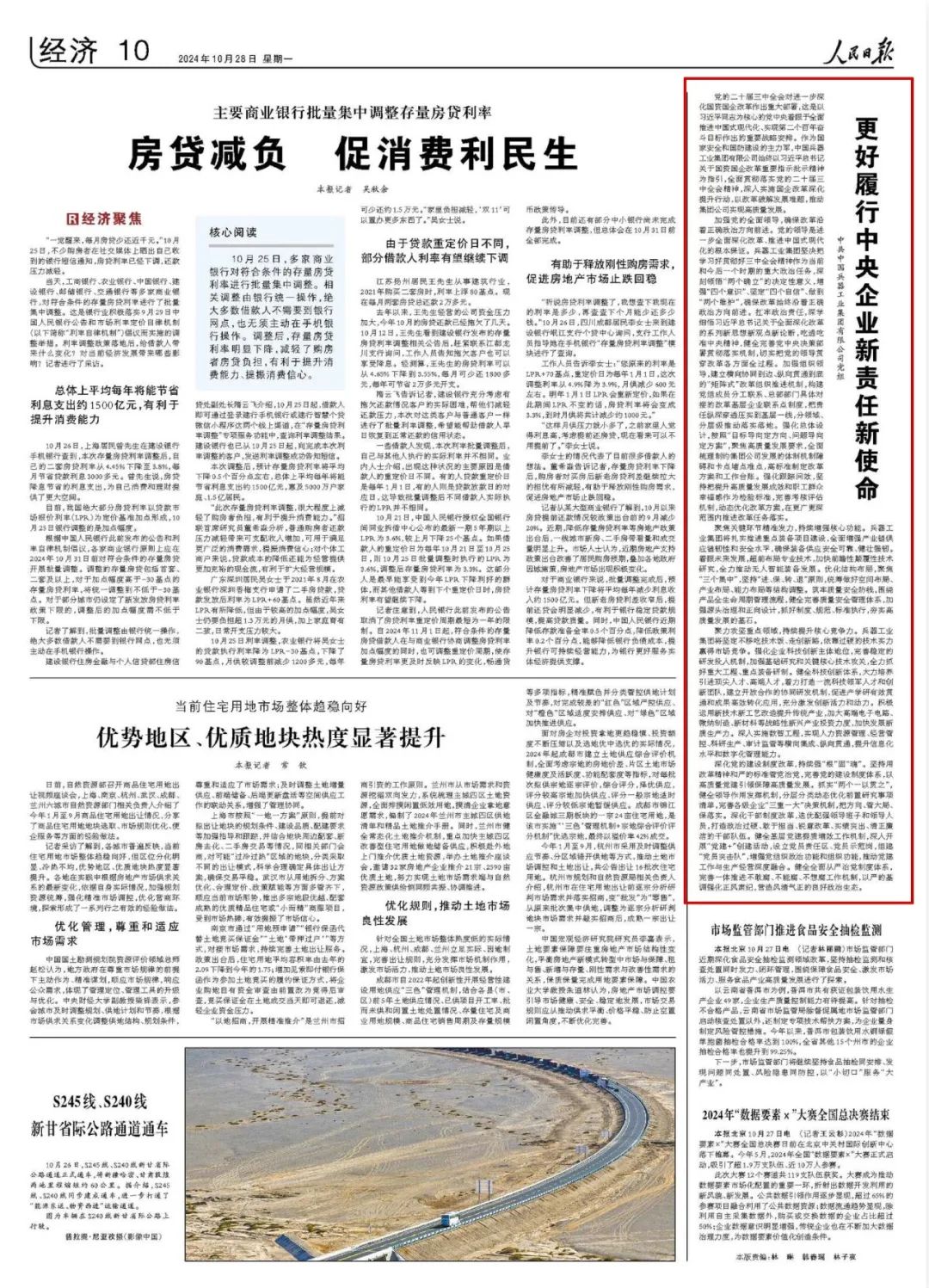 10月28日,《人民日报》刊发世界杯竞猜网站党组署名文章《更好履行中央企业新责任新使命》。全文如下: 党的二十届三中全会对进一步深化国资国企改革作出重大部署,这是以习近平同志为核心的党中央着眼于全面推进中国式现代化、实现第二个百年奋斗目标作出的重要战略安排。作为国家安全和国防建设的主力军,世界杯竞猜网站始终以习近平总书记关于国资国企改革重要指示批示精神为指引,全面贯彻落实党的二十届三中全会精神,深入实施国企改革深化提升行动,以改革破解发展难题,推动集团公司实现高质量发展。 加强党的全面领导,确保改革沿着正确政治方向前进。党的领导是进一步全面深化改革、推进中国式现代化的根本保证。兵器工业集团坚决把学习好贯彻好三中全会精神作为当前和今后一个时期的重大政治任务,深刻领悟“两个确立”的决定性意义,增强“四个意识”、坚定“四个自信”、做到“两个维护”,确保改革始终沿着正确政治方向前进。扛牢政治责任,深学细悟习近平总书记关于全面深化改革的系列新思想新观点新论断,吃透吃准中央精神,健全完善党中央决策部署贯彻落实机制,切实把党的领导贯穿改革各方面全过程。加强组织领导,建立横向协同到边、纵向贯通到底的“矩阵式”改革组织推进机制,构建党组成员分工联系、总部部门具体对接的改革基层企业联系点制度,把责任纵深穿透压实到基层一线,分领域、分层级推动落实落地。强化总体设计,按照“目标导向定方向、问题导向定方案”,聚焦高质量发展要求,全面梳理制约集团公司发展的体制机制障碍和卡点堵点难点,高标准制定改革方案和工作台账。强化跟踪问效,坚持把提升高质量发展成效和职工群众幸福感作为检验标准,完善考核评估机制,动态优化改革方案,在更广更深范围内推进改革任务落实。 聚焦关键环节精准发力,持续增强核心功能。兵器工业集团将扎实推进重点装备项目建设,全面增强产业链供应链韧性和安全水平,确保装备供应安全可靠、健壮强韧。着眼未来发展,超前布局专业技术,加快前瞻性颠覆性技术研究,全力推动无人智能装备发展。优化结构布局,聚焦“三个集中”,坚持“进、保、转、退”原则,统筹做好空间布局、产业布局、能力布局等结构调整。筑牢质量安全防线,围绕产品全生命周期管理流程,健全完善质量安全管理体系,加强源头治理和正向设计,抓好制度、规范、标准执行,夯实高质量发展的基石。 聚力攻坚重点领域,持续提升核心竞争力。兵器工业集团将坚定不移吃技术饭、走创新路,依靠过硬的技术实力赢得市场竞争。强化企业科技创新主体地位,完善稳定的研发投入机制,加强基础研究和关键核心技术攻关,全力抓好重大工程、重点装备研制。健全科技创新体系,大力培养引进顶尖人才、高端人才,着力打造一流科技领军人才和创新团队,建立开放合作的协同研发机制,促进产学研有效贯通和成果高效转化应用,充分激发创新活力和动力。积极运用新技术新工艺改造提升传统产业,加大高端电子电路、微纳制造、新材料等战略性新兴产业投资力度,加快发展新质生产力。深入实施数智工程,实现人力资源管理、经营管控、科研生产、审计监管等横向集成、纵向贯通,提升信息化水平和数字化管理能力。 深化党的建设制度改革,持续强“根”固“魂”。坚持用改革精神和严的标准管党治党,完善党的建设制度体系,以高质量党建引领保障高质量发展。抓实“两个一以贯之”,健全领导作用发挥机制,分层分类动态优化前置研究事项清单,完善各级企业“三重一大”决策机制,把方向、管大局、保落实。深化干部制度改革,选优配强领导班子和领导人员,打造政治过硬、敢于担当、锐意改革、实绩突出、清正廉洁的干部队伍。健全基层党建提质增效工作机制,深入开展“党建+”创建活动,设立党员责任区、党员示范岗,组建“党员突击队”,增强党组织政治功能和组织功能,推动党建工作与生产经营深度融合。健全全面从严治党制度体系,完善一体推进不敢腐、不能腐、不想腐工作机制,以严的基调强化正风肃纪,营造风清气正的良好政治生态。 来源/2024年10月28日《人民日报》第10版 |