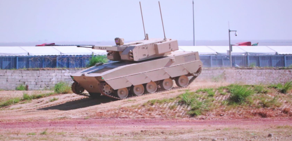 发布会现场,兵器工业集团介绍了针对现代战争形态变化,重磅推出的数智赋能军贸合成旅作战体系,发布多款新一代陆域作战装备,包含轮式装甲车、火炮、无人机、无人车等多种类型。