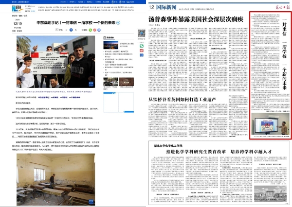 新华社、《光明日报》报道北方公司振华石油海外项目践行社会责任:一封来信 一所学校 一个新的未来 |