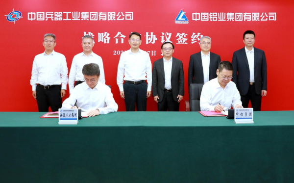 程福波对中铝集团长期以来给予集团公司的支持表示感谢。他表示,兵器工业集团与中铝集团作为保障国家安全和资源安全的重要力量,业务互补性强,合作基础坚实,合作前景广阔。希望双方以本次协议签署为新起点,积极创新合作模式、搭建合作平台,着力深化在科技创新、矿产资源、矿山机械、国际贸易等方面的战略合作,实现互为用户、互为市场、互相支撑,共同强化自主可控、安全可靠的产业链供应链,共同打造央企合作典范,履行好党中央赋予的核心使命,为服务国家战略实施作出新的更大贡献。 段向东对程福波一行到访表示欢迎,对兵器工业集团长期以来给予中铝集团的支持表示感谢。他表示,中铝集团和兵器工业集团同为国资央企,肩负着共同的责任使命,长期保持紧密合作关系,在有色金属材料研发及保供方面取得了良好成效。此次合作协议的签署,标志双方合作上升到新高度。希望双方建立高层会晤机制,深化“战略合作+项目清单”合作模式,精准对接需求,在联合研发、资源开发、物资集采等方面深化合作,在服务国家战略大局中彰显央企责任担当,为推动经济社会高质量发展贡献力量。 根据协议,双方一致同意按照“科技引领、重点突破、全面合作、共谋发展”原则,以服务国家战略、推动高质量发展为主题,在新材料研发、创新平台建设、产业链供应链等领域深化合作,加快新质生产力发展,推进双方互惠互利和高质量发展。 双方有关部门和单位负责人出席签约仪式。(刘畅)