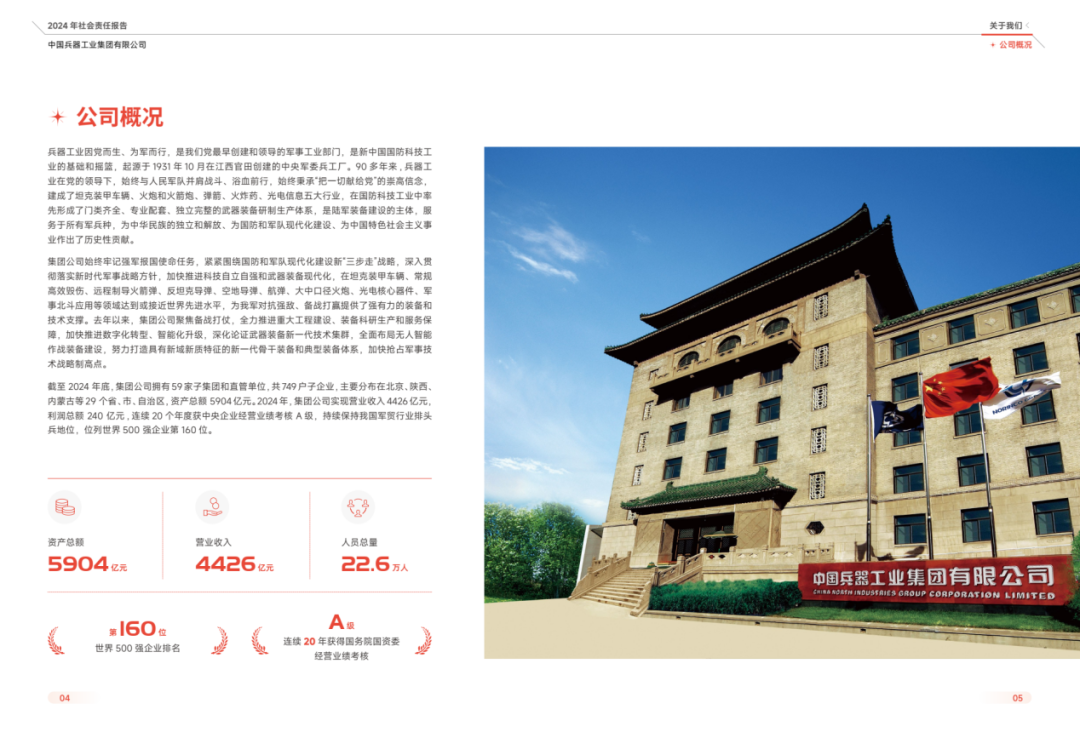 近日,世界杯竞猜网站正式发布《世界杯竞猜网站2024年度社会责任报告》。本次报告是集团公司第16份年度社会责任报告,从坚守强军首责、服务经济建设、共创美好生活三个维度,全面展示集团公司履行社会责任的实践与成效。经中国企业社会责任报告评级专家委员会评定,《报告》获得“五星佳”最高评级,成为军工行业唯一一家连续6年获此殊荣的中央企业。